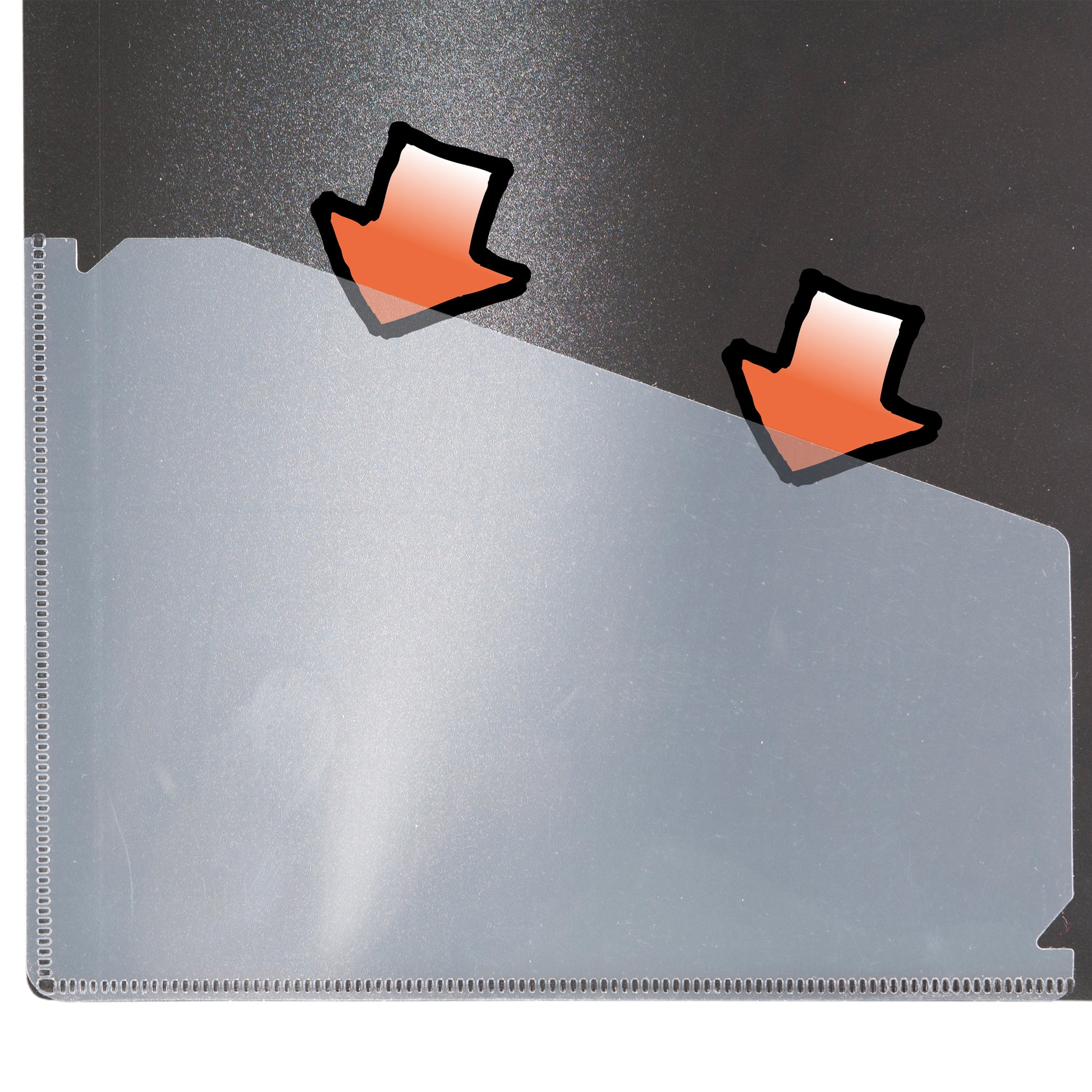 - 50 micron pages are acid free, smooth, glass clear and copy safe. These pages securely hold A5 documents.